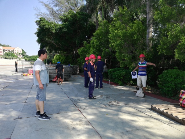 根据大赛要求,需要在上弦场舞台后方安装2台临时箱变,并在校内新增10台动力柜,以确保大赛期间用电万无一失。9月21日,中心领导带领维修师傅们进行现场勘察,并部署施工方案。