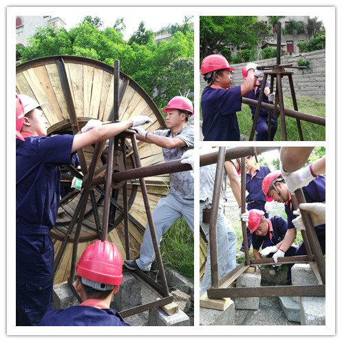 根据现场地理环境多次调整电缆架角度,保证电缆盘安装的安全性