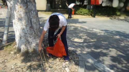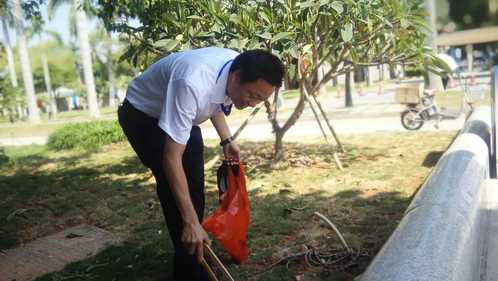 为喜迎第四届“互联网+”大学生创新创业大赛全国总决赛的到来,10月9日开始,公寓党支部组织党员、积极分子投身一线参与校园清洁,党员同志胸戴党员徽章亮出身份,以强烈的主人翁精神和大局意识,冲锋在前,仔细寻捡主干道烟头、草丛垃圾等,带动全员在盛会筹备冲刺阶段支援重点区域的保洁工作。