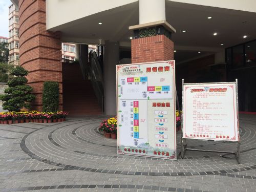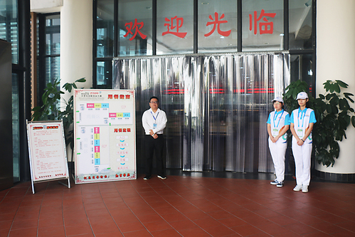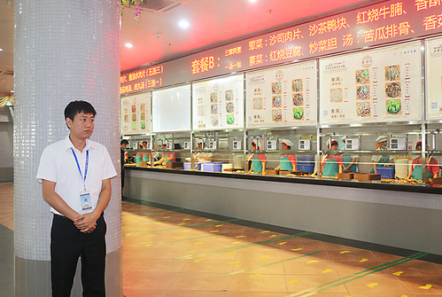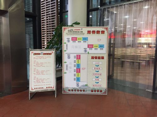餐厅门前的指引牌上,清晰地写着用餐指南和用餐流程,引导前来就餐的来宾快速用餐