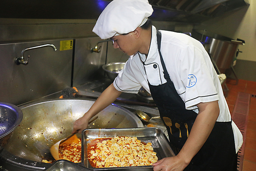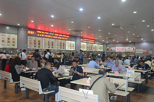 每日,餐厅提供A、B、C三种套餐,每种套餐含主食1份、荤菜3种(5选3)、素菜两种、汤1份(3选1),三天的菜单均不相同。品种丰富,任参赛师生和莅临嘉宾选择。