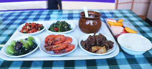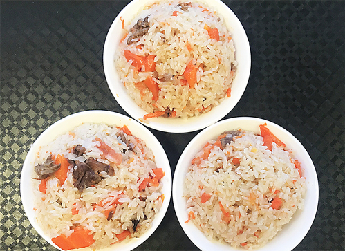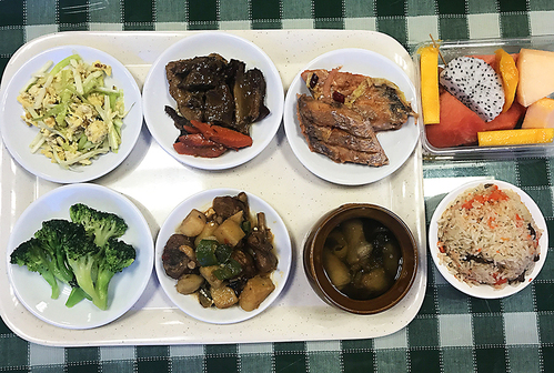 清真餐厅做了充足准备,主食有特色手抓饭、白米饭和馕可选,菜品多样,荤素搭配合理,并配佐餐水果,精致可口