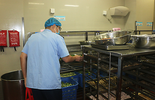 凌晨四点,厦门市市场监督管理局工作人员到餐厅全程监督食材的验收和餐厅晨检工作,确保食品安全