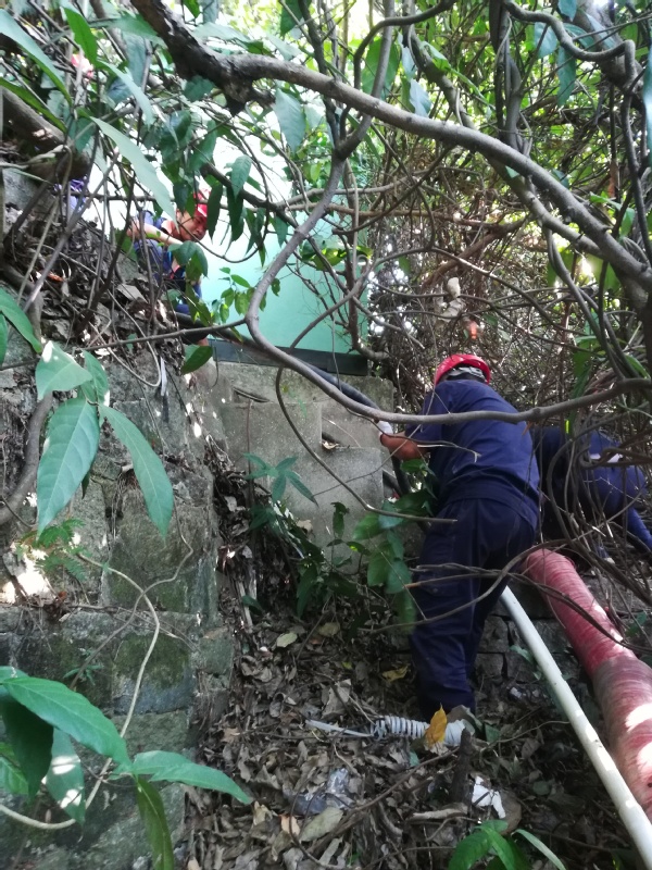 作品名称:《烈日下高杆灯除草》