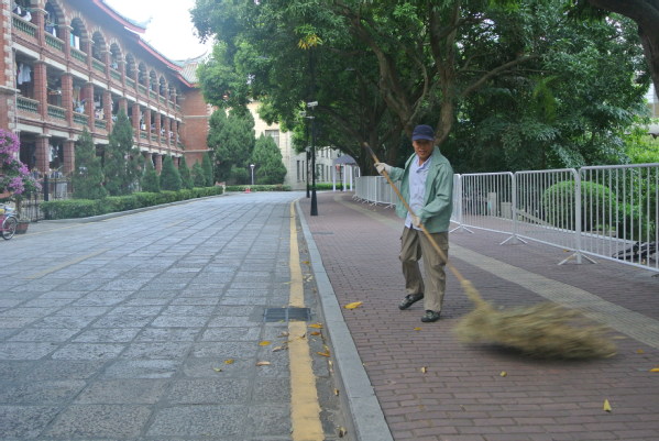 作品名称:《整洁的校园路面背后,是他们不懈的清扫》