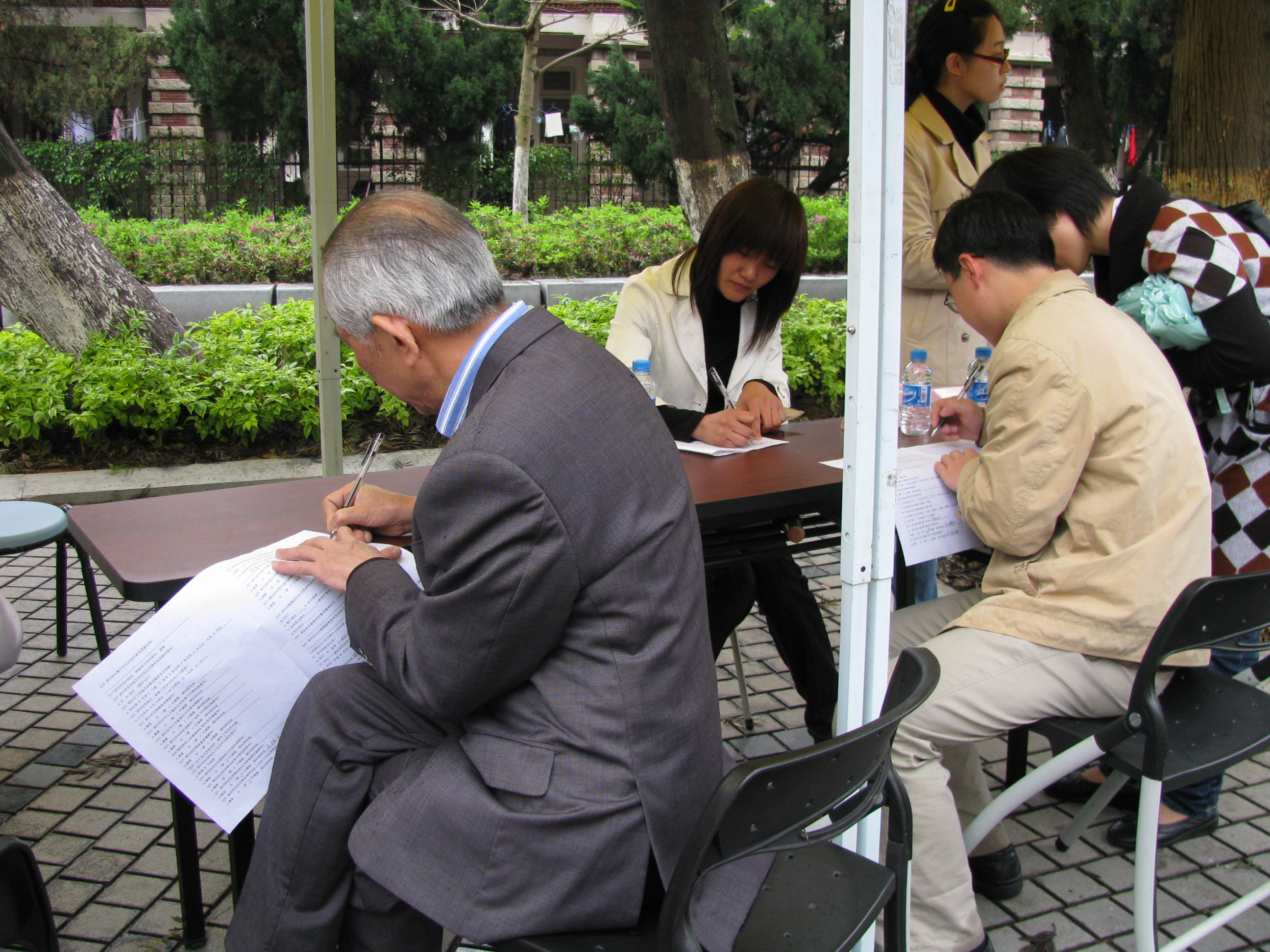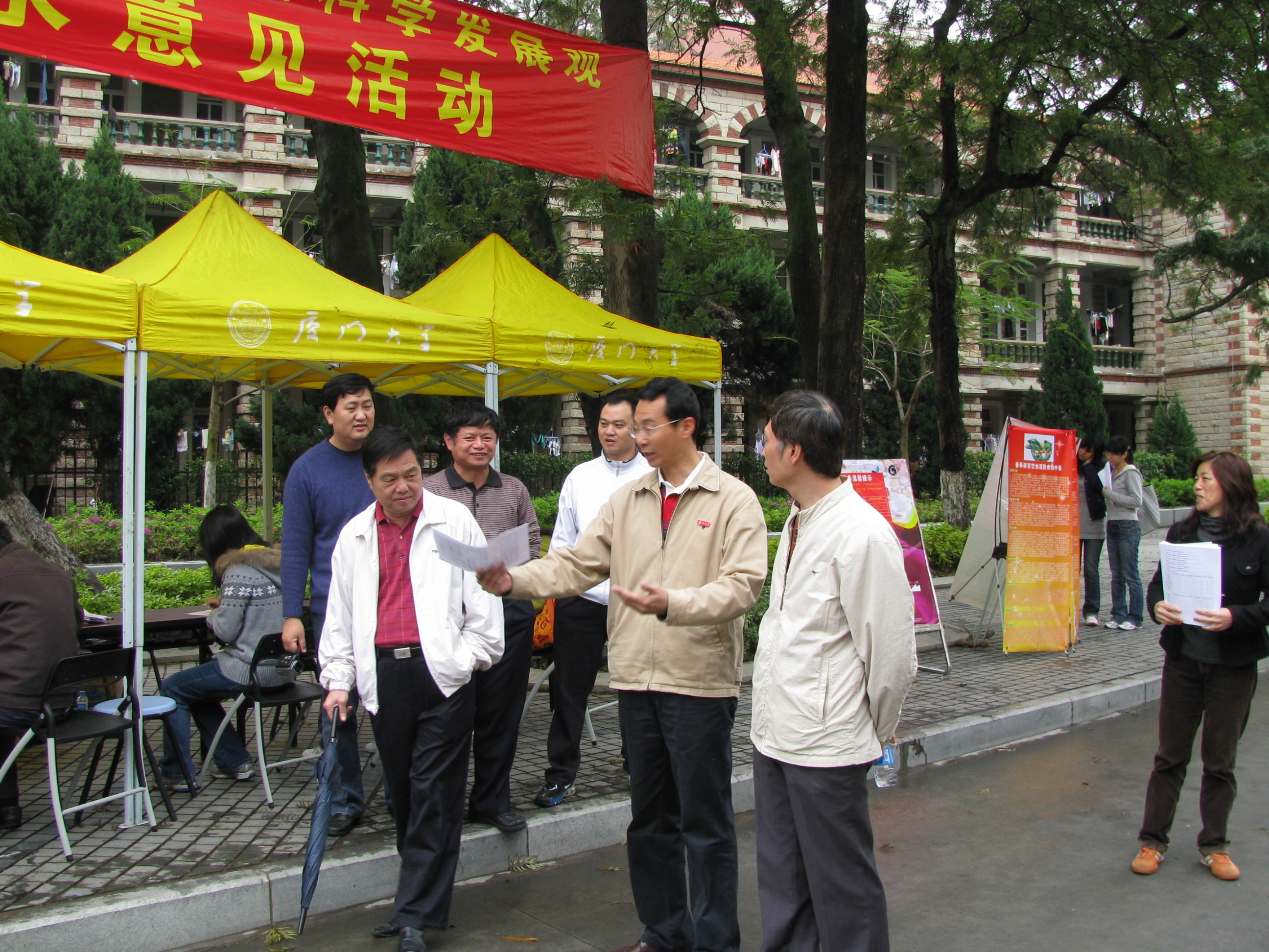 3月29日上午9点,在蒙蒙的细雨中,后勤集团深入学习实践科学发展观活动现场征求意见活动在三家村广场举行。集团党总支书记叶鹏飞、副书记庄惠美、副总经理郑庆喜等领导莅临现场和工作人员一起热情接待前来填写调查问卷的师生,真诚倾听师生的宝贵建议和意见,耐心解答师生们提出的问题。