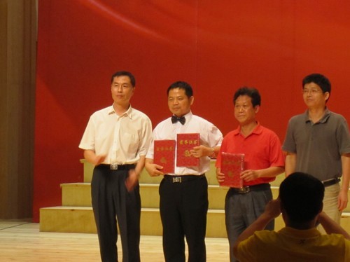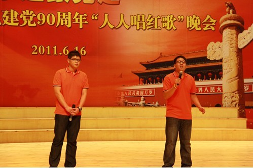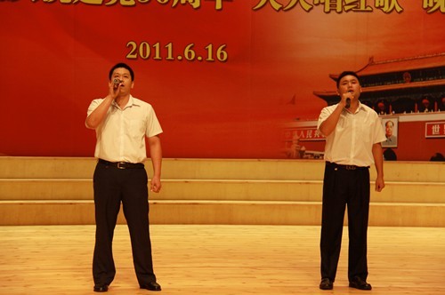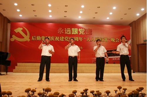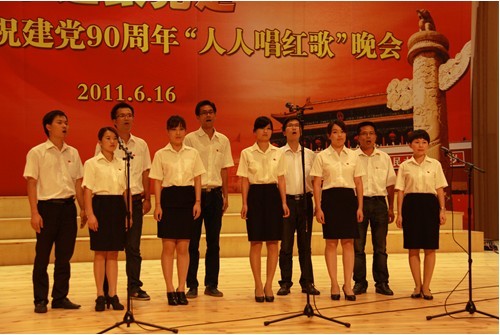 ——后勤集团隆重举行庆祝建党90周年“人人唱红歌”晚会http://jd90.xmu.edu.cn/s/79/t/249/a/78858/info.jspy6月16日晚7:30,科学艺术中心音乐厅激情高涨、歌声嘹亮,在鲜红的党旗下,后勤集团员工用一首首脍炙人口的红歌讴歌党的丰功伟绩,庆祝中国共产党建党90周年的到来!参加集团90周年校庆表彰大会的领导和集团500名员工代表兴致勃勃地观看了晚会。这场晚会是后勤集团庆祝中国共产党成立90周年系列活动之一,旨在通过红歌讴歌党成立90年来所取得的伟大成就和丰功伟绩,进一步在全集团上下唱响共产党好、社会主义好、改革开放好、伟大祖国好、各族人民好的时代主旋律。集团领导和各中心、各部门党员干部怀着对党的深厚感情,积极自发踊跃报名,并努力克服后勤工作忙碌等困难,利用业余时间用心准备、精心排练,很好形成全集团“人人唱红歌”的浓厚氛围。晚会在后勤集团90周年校庆工作表彰大会结束后正式拉开帷幕。集团小组唱队的一曲《绣红旗》,深情抒发了后勤人爱党爱国的朴素情怀,唱响了“永远跟党走,红歌颂党恩”这一整场晚会的主旋律;紧接着,由公寓党支部选送的《青藏高原》,以圣洁广袤的青藏高原作比,歌颂了党领导下的祖国大好河山;由漳州校区服务办党支部选送的《天路》,由集团本部党支部选送的《团结就是力量》,分别表达了后勤人勇于克服困难,变天堑为通途,上下同心,团结一致,为学校各项事业发展贡献力量的豪情壮志;由物业党支部选送的《中国人》,由饮食服务中心党支部选送的《龙的传人》,共同抒发了中国人民在党的光辉照耀下,自信昂扬,阔步向前的豪迈情怀;男声独唱《我为祖国献石油》,由接待服务中心党支部选送的《战士歌唱毛主席》,流露出了工农兵爱国爱党的真挚情怀;“五星红旗,你是我的骄傲,五星红旗,我为你自豪”,由综合党支部和漳州校区服务办党支部分别选送的《红旗飘飘》,通过歌颂五星红旗,表达了全国各族人民坚定团结在中国共产党周围,永远跟党走的决心;由综合党支部选送的《没有共产党就没有新中国》、《社会主义好》、《最美的歌儿唱给妈妈》,由饮食服务中心党支部选送的《父亲的草原母亲的河》,从不同角度倾情歌颂党的丰功伟绩,歌颂社会主义好;由公寓党支部选送的《为了谁》、《祖国不会忘记》,颂扬了党领导下的人民子弟兵,一心向党,一心为人民;由物业党支部选送的《大中国》,由漳州校区服务办党支部选送的《国家》,男声独唱《我和我的祖国》,女声独唱《祝福祖国》,集团合唱队的《祖国颂》从不同的角度真情抒发了后勤人热爱祖国,祝福祖国在中国共产党的领导下,日新月异,繁荣富强!经过现场评委的评选,由各支部选送参赛的15个曲目中,接待服务中心党支部选送的男声独唱《战士歌唱毛主席》荣获一等奖,公寓党支部选送的小组唱《祖国不会忘记》、综合党支部选送的合唱《没有共产党就没有新中国》、《社会主义好》和综合党支部选送的独唱《最美的歌儿唱给妈妈》荣获二等奖,漳州校区服务办党支部选送的二重唱《红旗飘飘》和物业党支部选送小组唱《大中国》荣获三等奖。与会嘉宾和集团领导上台为获奖者颁奖。晚会在全场齐唱《没有共产党就没有新中国》的雄壮歌声中落下帷幕。 (后勤集团:林 琳)