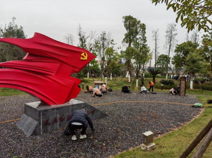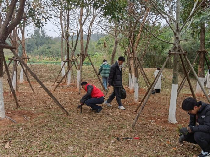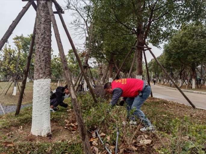 3月10日,校区服务办党支部的15名党员带领着校区150名学生,在“八闽园”开展“劳育筑梦之植树抚育劳动志愿”的党日活动。活动前,党员为学生们讲解各种绿化养护常识,并示范教大家怎么除草劳作,强调劳动安全事项。活动时,按照事先分配好的10个小组,党员同志起到带头模范作用,学生们齐头并进,虽然天气阴冷并不时飘落雨滴,但学生们热情高涨,与党员同志团结一致为八闽园铲土、锄草、清理杂草杂藤等劳作,经大家的共同劳作,“八闽园” 看起来比以前更加的艳丽。