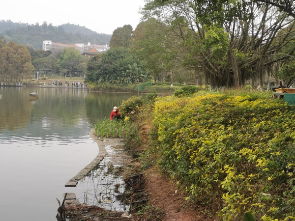 后期养护,保障绿化成果。俗话说:“三分栽,七分养”,养护管理更是绿化工作的重心。绿化保洁部充分考虑校园环境以及日后维护保养的切实可行性,从其生态性、景观性、实用性、周边环境等方面综合考虑,对思明校区近10000㎡绿地进行补栽补种和提质改造,共补种苗木35种9万余株,草皮近4000㎡,给校园环境增添了美丽风景,为师生员工提供了宜人的学习、工作和生活环境。