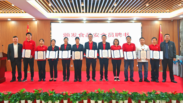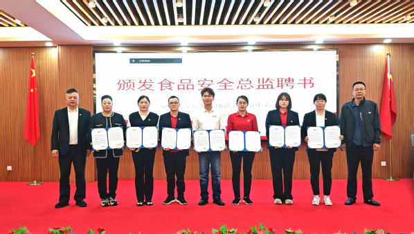 根据食品安全新规要求,中心严格落实食品安全主体责任,依据分级标准和实际需求,配齐食品安全总监和食品安全员,做好“日排查、周管控、月调度”工作。为了明确责任,各餐厅经理为餐厅食品安全第一责任人,任命为食品安全总监;各餐厅主管任命为食品安全员。会上,沈总和李主任为相关人员颁发聘书。