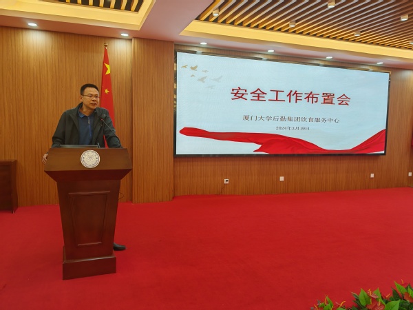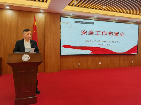 3月19日下午,饮食服务中心在东苑餐厅二楼召开安全工作布置会,集团副总经理沈雄晖到会指导。翔安校区、漳州校区同步线上会议。