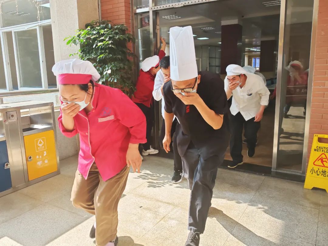 员工们按照餐厅的安全疏散路线,迅速有序地撤离至安全区域。演练总指挥清点人数,了解人员安全状况。大家相互协作,默契配合,确保了演练的顺利进行。