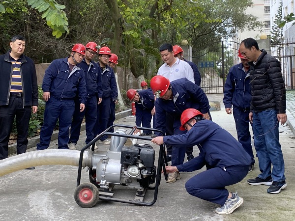 活动最后,现场模拟了校内突发强降雨恶劣天气导致路面积水情形,通过信息上报、应急集结、物资调度、疏通排涝等手段,检验防台防汛应急抢险预案,锻炼应急抢修队伍处置能力,为汛期校园稳定提供强有力的保障。