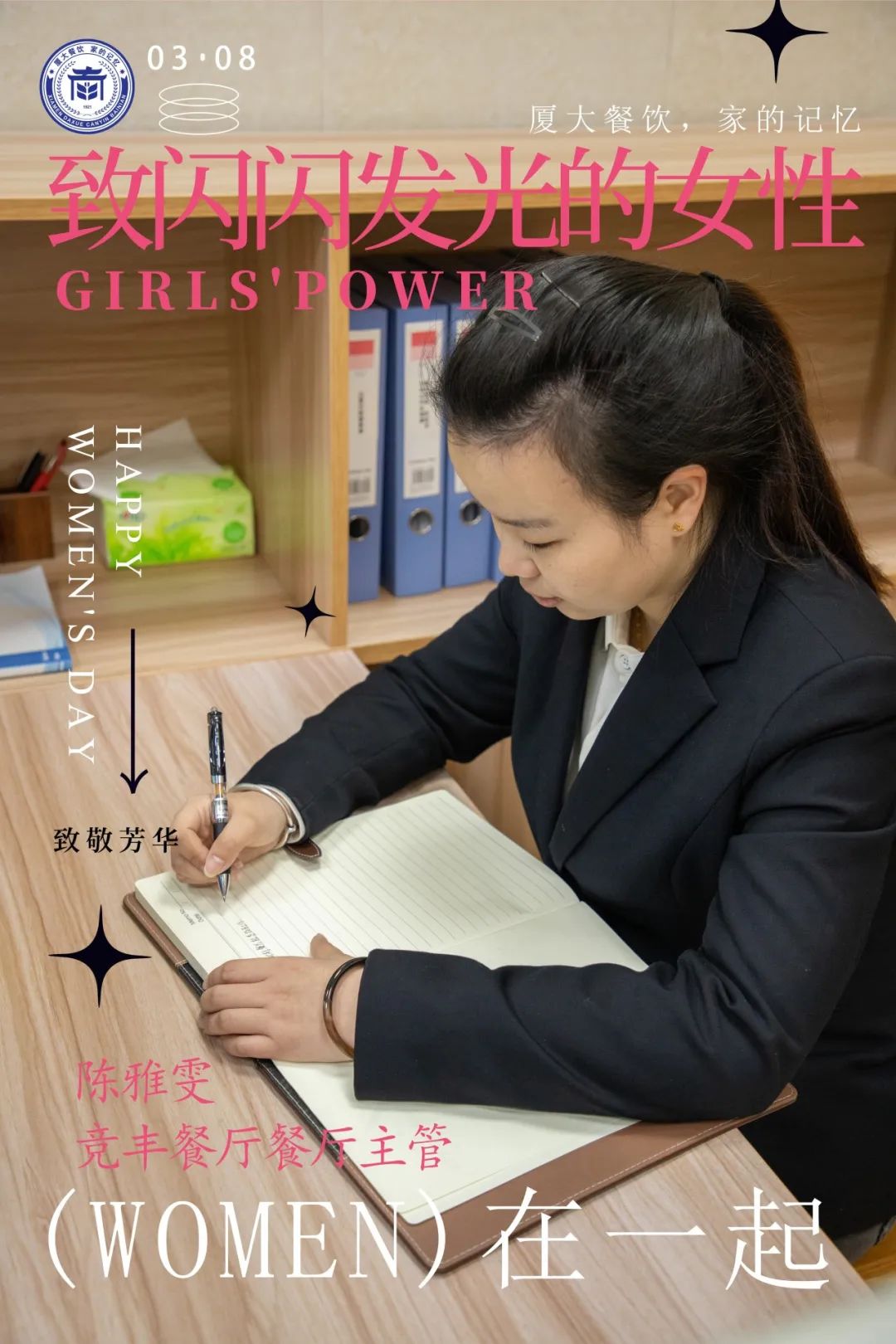 值此三八妇女节之际,我们选取八位优秀的女性员工作为代表,展现女性在职场中的卓越风采和非凡力量。借此机会,祝福全校女同胞节日快乐,事业顺利,生活美满。