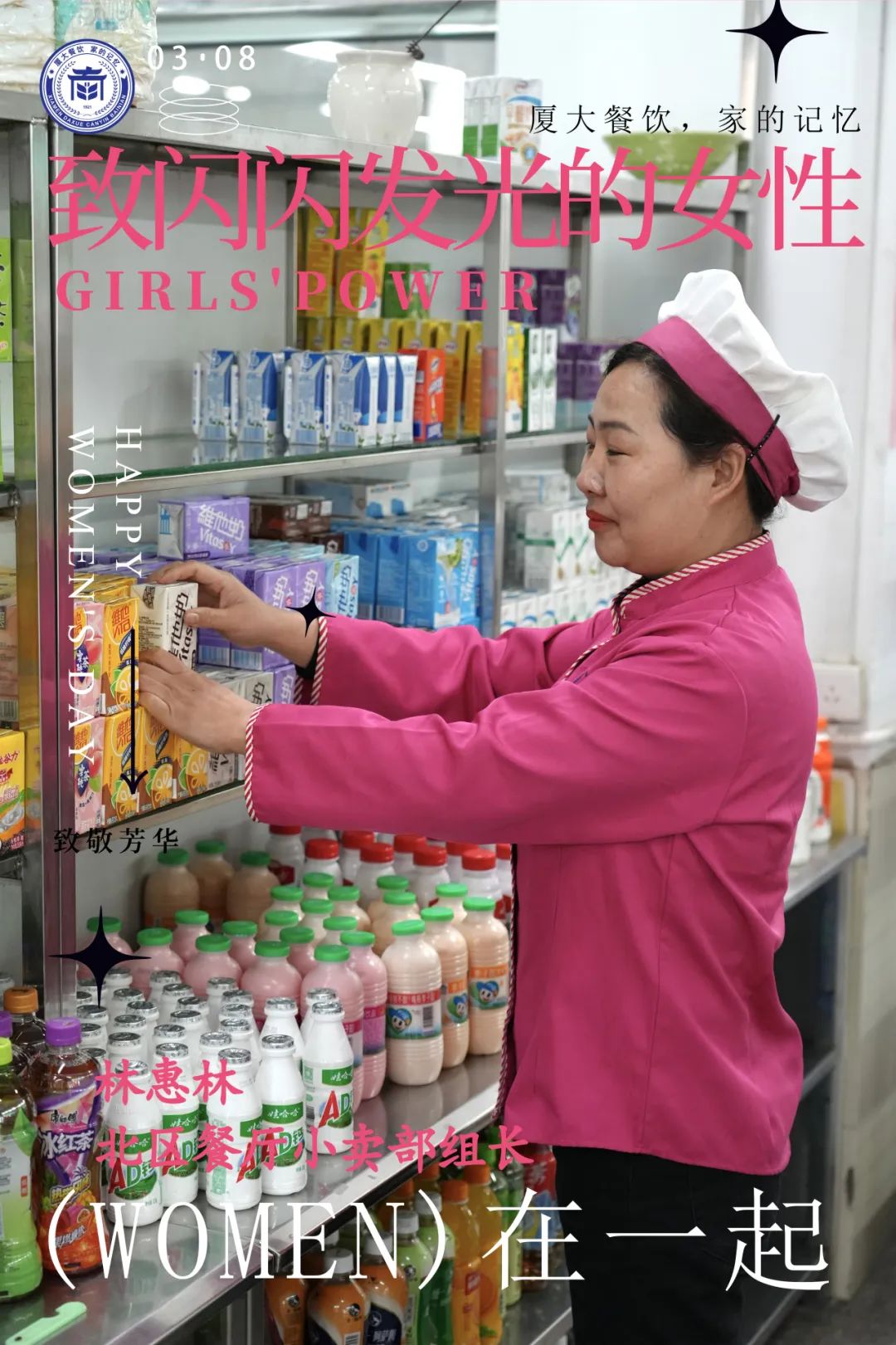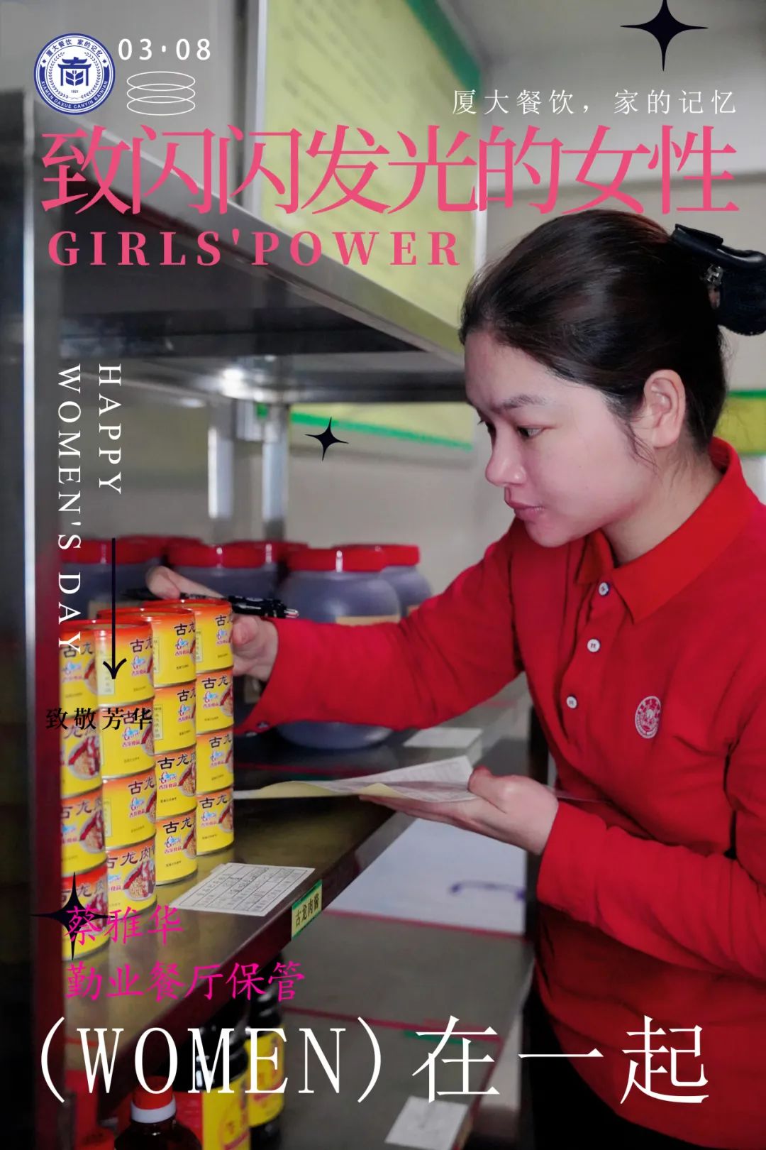 在华人策略celue饮食服务中心,有这样一群女性员工,她们以卓越的工作表现,无私的奉献精神,在各自岗位上闪闪发光。