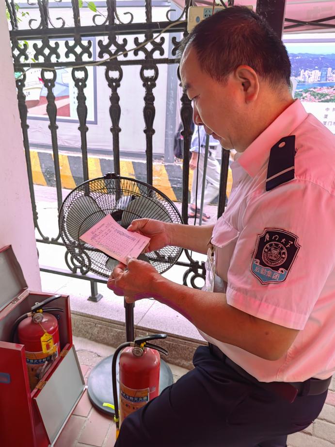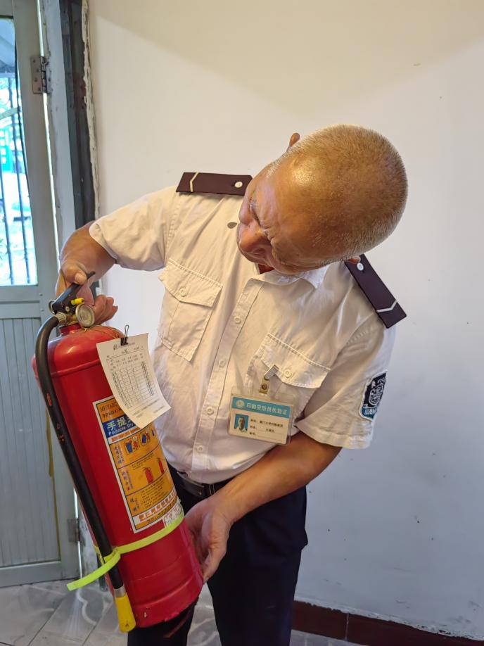 对校门值班室的灭火器等消防设施进行检查,消除消防安全隐患,筑牢校门安全屏障。