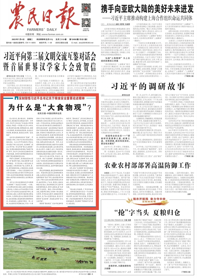在全面建成社会主义现代化强国的新征程上,强调大食物观,体现了党中央坚持人民至上、更好满足人民美好生活需要的初心,更体现了以食物保供打牢农业强国根基、应对百年未有之大变局的决心。