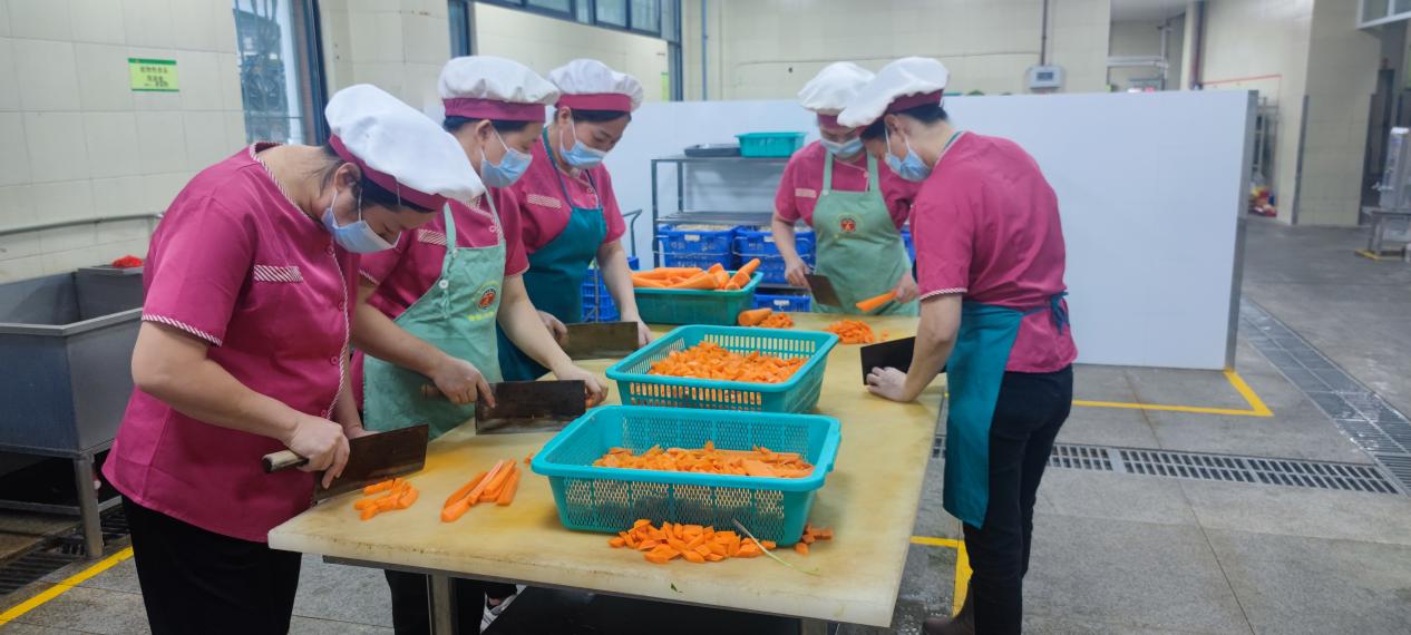 为确保供餐工作圆满顺利,饮食中心调配了三校区共计近百名工作人员前往支援,校庆前几天,部分支援的骨干就提前入住校区投入准备工作,中心三名行政总厨、三名品控人员分别驻守三家餐厅,监督保障菜品质量和食品安全。10月21日凌晨2:00,校庆供餐工作全面正式启动,所有工作人员开足马力,紧张有序地验收、处理、备料、制作、传送、分装、打包、现场分发……