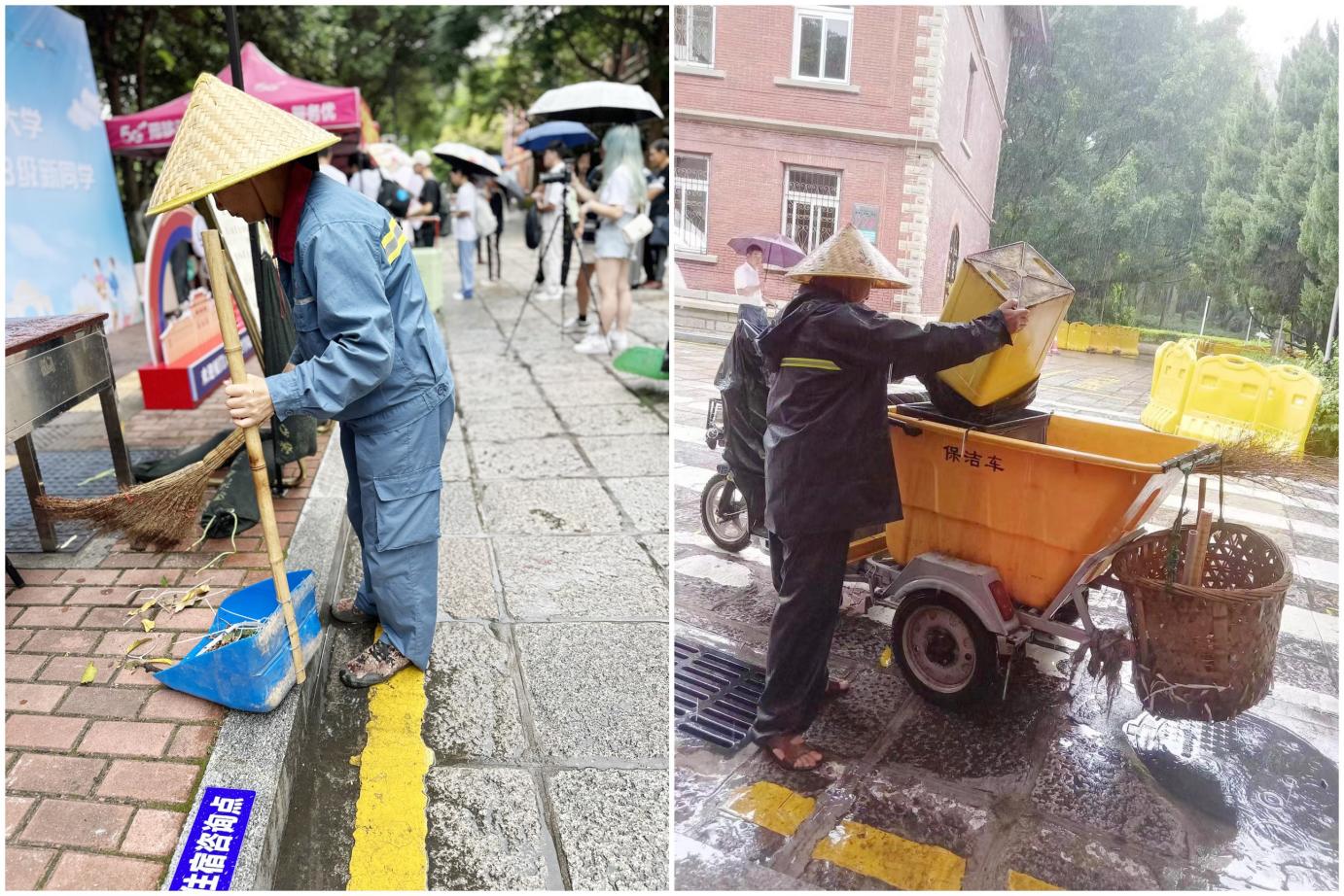 迎新期间生活垃圾比平时增加了不少,道路保洁员从早到晚对校园公共环境进行不间断流动保洁并及时清运垃圾,确保校园干净整洁,给新生及家长留下美好的校园第一印象。