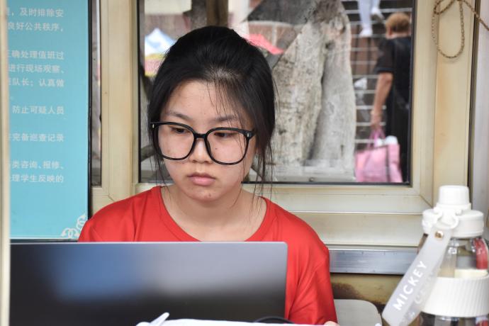 在公寓办的协调帮助下,学生志愿者在各入住办理点协助实时更新新生入住数据。
