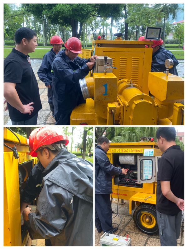 中心利用雨停的“短暂”间隙,对抽水机进行补充加油、充电以及安全检查,续足“马力”时刻准备着