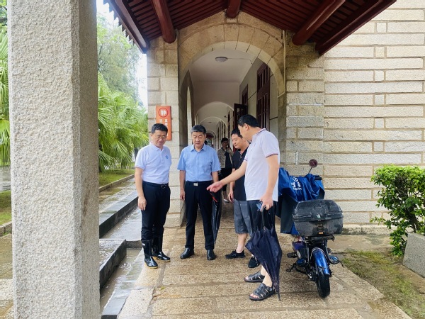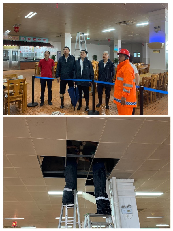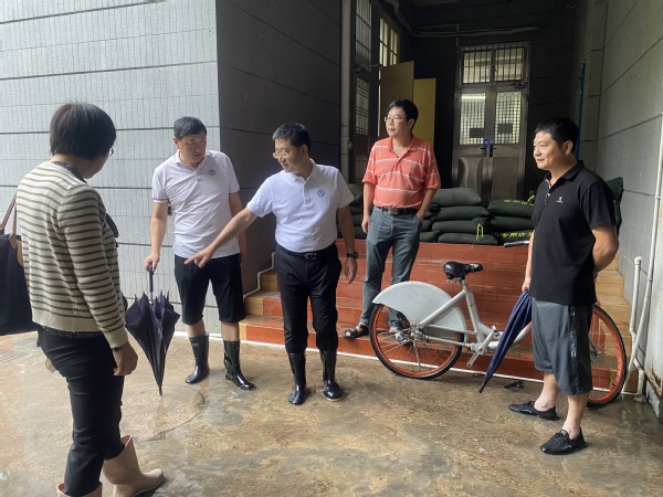 6日上午,集团总经理杨旸、副总经理王裕民陪同校党委副书记全海在受灾现场了解情况,商讨防汛设施设置等问题