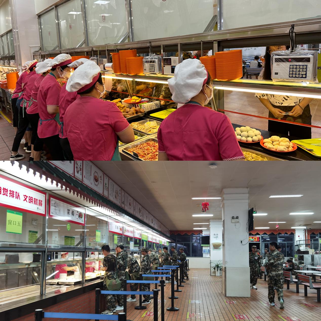 较往年不同的是,此次军训为期三周,后勤保障工作贯穿于军训始末,涉及到方方面面。服务办与校区各部门紧密联系,多次召开军训协调会,会后布置落实各项军训相关工作。餐饮部做好军训期间供餐保障,各餐厅增设服务窗口,提前和延长就餐时间,增加菜肴的花色品种,丰庭餐厅承接军训教官用餐,专门提供独立区域,设置独立窗口,受到教官的一致好评。军训时身体内水分消耗极大,餐厅贴心地提供凉茶和盐水,让学生们及时补充身体的水分,恢复体力,给在烈日下训练的同学们添了一丝清凉。校园服务部做好军训期间分兵、新生开学典礼暨军训结业典礼、系列讲座等会场准备及收尾工作,增派保洁人员根据学生训练安排及时有效做好现场保洁和环境美化工作,为学生创造干净舒适的环境,加强园区门岗值守及巡逻工作。水电管理部每日对军训场地照明进行巡查,做好军训期间场地照明保障工作。运输服务部及时协调车辆为漳州校区双创学院学生、本部学生军训结业典礼彩排及军训结业典礼的往返、教官日常出行提供用车保障。