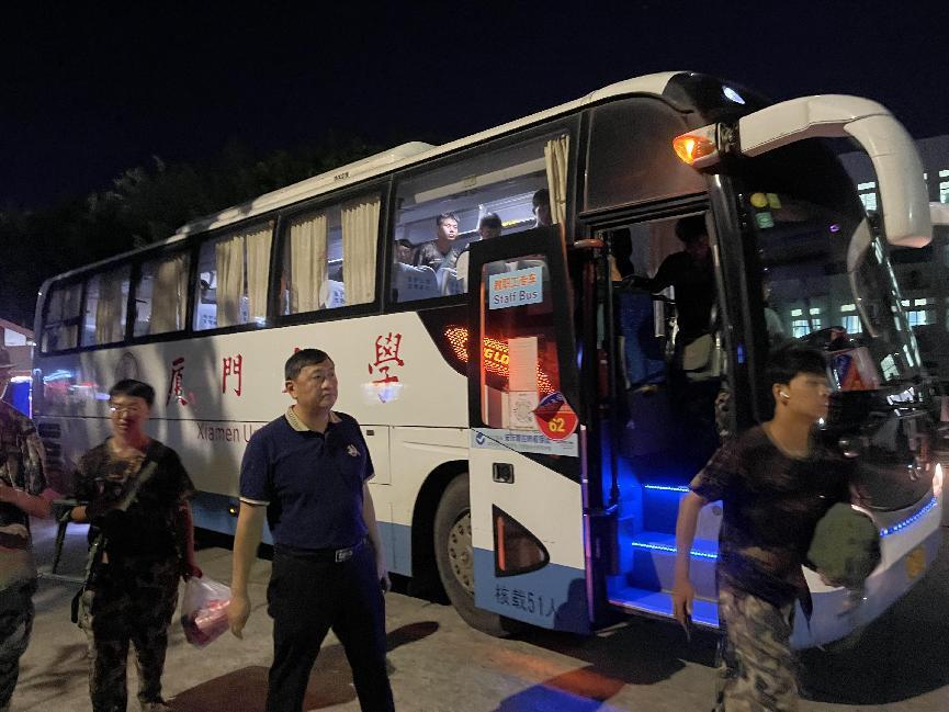 凌晨5点,中心全员在科艺中心广场集合,按照既定任务分工分别做好车辆引导、停放、现场贴标、登记等工作。凌晨5:30,晨风微拂,迎着清晨的第一缕曙光,车辆准时到位,67部大客车整齐有序停放在科艺广场及群贤路,在中心工作人员的现场引导下,学生对标有序上车。6:10车辆准时发车,护送新生前往翔安校区。军训汇演结束前,中心全员提前到达,安全有序接送学生返回思明校区。集团领导多次到现场关心慰问一线员工,了解发车情况并进行现场工作指导。