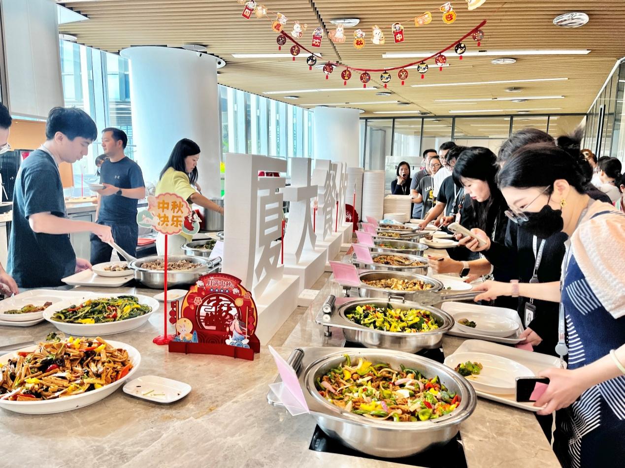 中秋月正圆,月饼香又甜。月饼有着象征团圆的美好寓意,今年,公司专门组织多位高级面点师制作纯手工月饼,从选材到加工,每个环节都精准把控,让大家在享用美食的同时,感受“厦大餐饮”人的匠心独运。