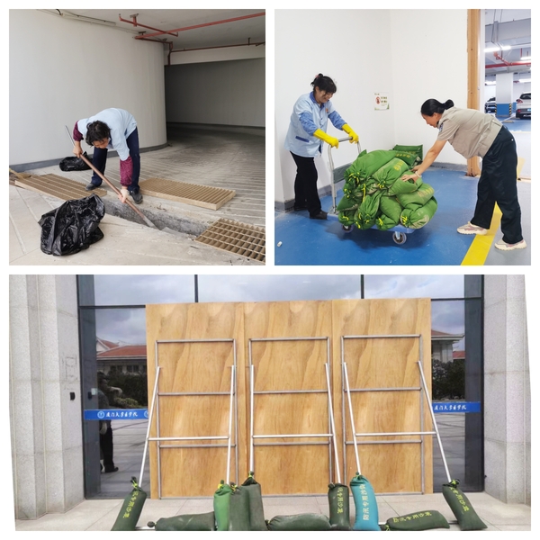 三校区各项目迅速行动,排查和消除水泵、发电机组等安全设施设备隐患,疏通清理排水管道、屋面、雨水渠、下水道、沙井杂物,将绿植及易松脱物件搬入安全地点、加固,盘点、测试、储备防汛物资,确定应急抢险人员名单,做好抢险、抢修准备,并及时提醒师生及职工做好室内和外出的防御准备,同时要求项目负责人在岗24小时待命,做好信息报送,及时上传下达,确保信息报送迅速准确,做到防范于未然。切实把各项防范措施落到实处,确保突发险情时能有效应对,保证设备稳定运行,平稳渡台。