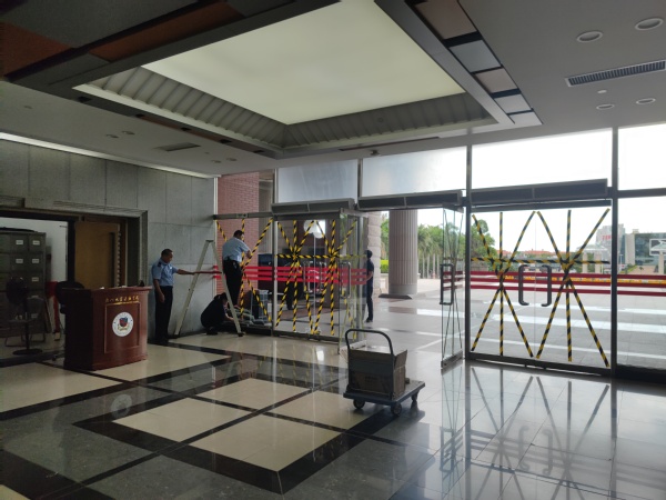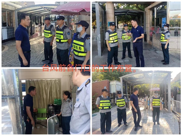 南强物业漳州分公司主楼物业服务处组织检查疏通排水沟,进行主楼周边30余个排水口的检查,在主楼入口玻璃门贴“米”字胶带进行加固,做好排污泵试运行,沙包摆放。校门安防将路锥、帐篷、太阳伞、告示牌、风扇收拾到安全位置归整好。做好防台防汛应急抢险人员的安排。敬贤物业服务处对整个教工住宅区的污水泵进行检查,对故障污水泵4台进行维修报修;对小区地下室、屋面、地面的排水沟出水口进行清淤疏通工作;补充补足防洪沙袋,并将防洪沙袋搬运至相应防洪点;对小区各楼栋屋面进行巡查,在各电梯轿厢、屋面及业主群张贴“关于加强消防工作及清理公共区域杂物的通知”,及时排除安全隐患;关闭整个小区通向屋面的防火门,锁紧所有楼道窗户;为员工配备雨衣雨鞋、安全帽、巡查强光手电筒、对讲机等;检查移动式小型抽水泵正常使用,准备两卷防水彩超布及铁锹、锄头等工具,在各电梯轿厢内张贴“关于防台防汛的温馨提示”,及时在业主微信群、QQ群里转发气象台关于台风“杜苏芮”的相关信息,提醒业主/住户(含装修户)注意安全。对教工之家活动室大玻璃门检查加固。