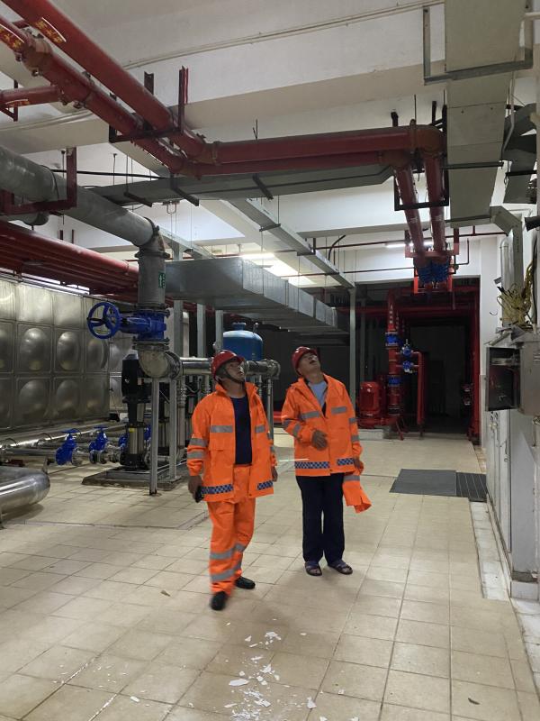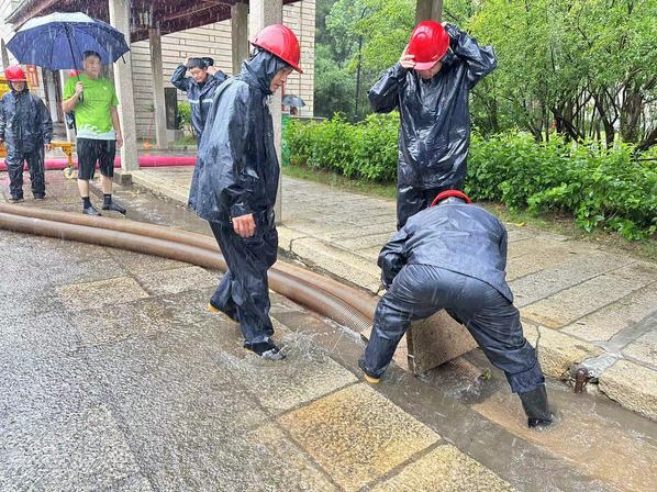 三校区各个危险点布设值班人员24小时进行严密监控,密切观察配电室、地下泵房等重要地点积水排水情况,确保水电运行安全。