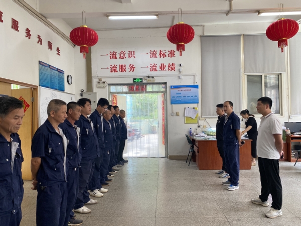 出发前对全体员工进一步解读防抗“杜苏芮”工作内容、值守范围和危险点,强调全员要保证“安全第一”,确保人身及财产安全。