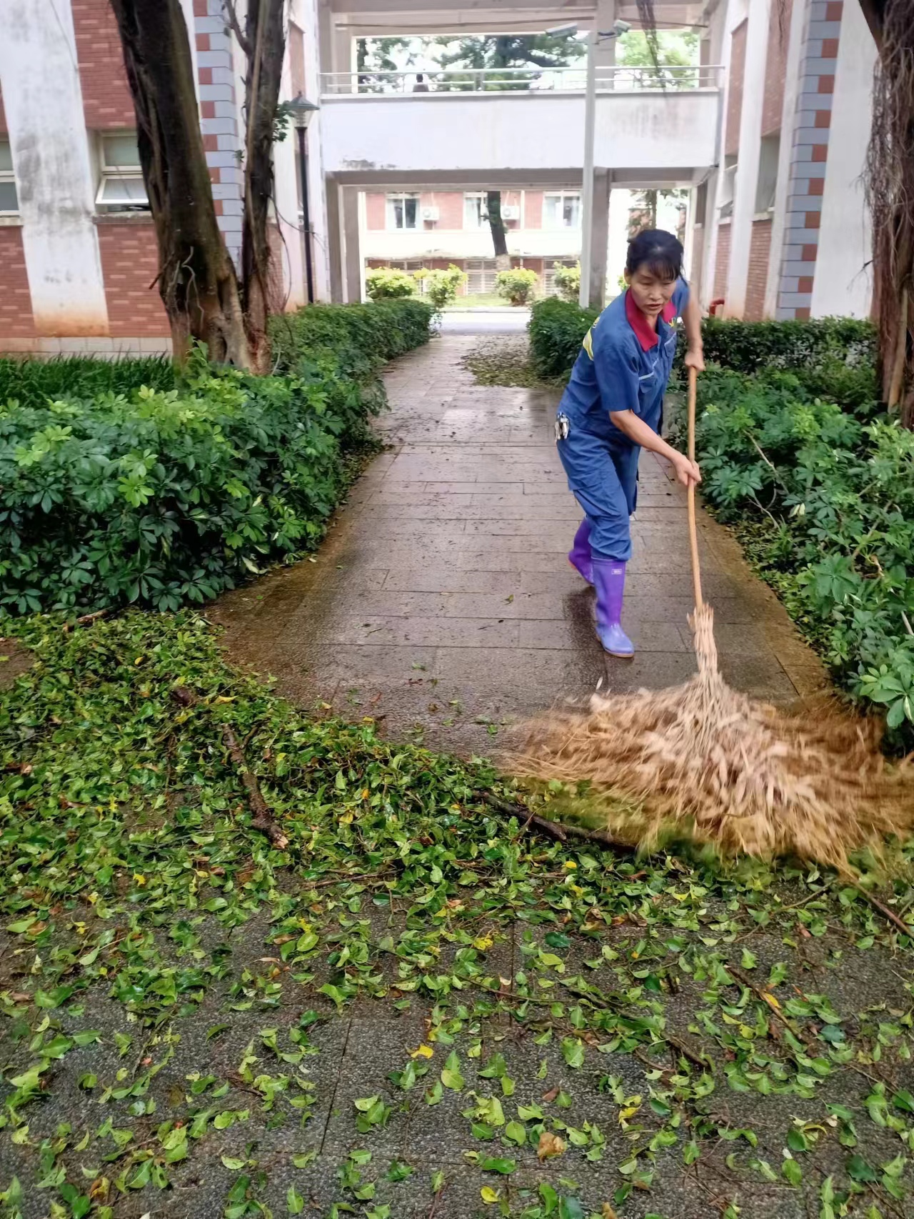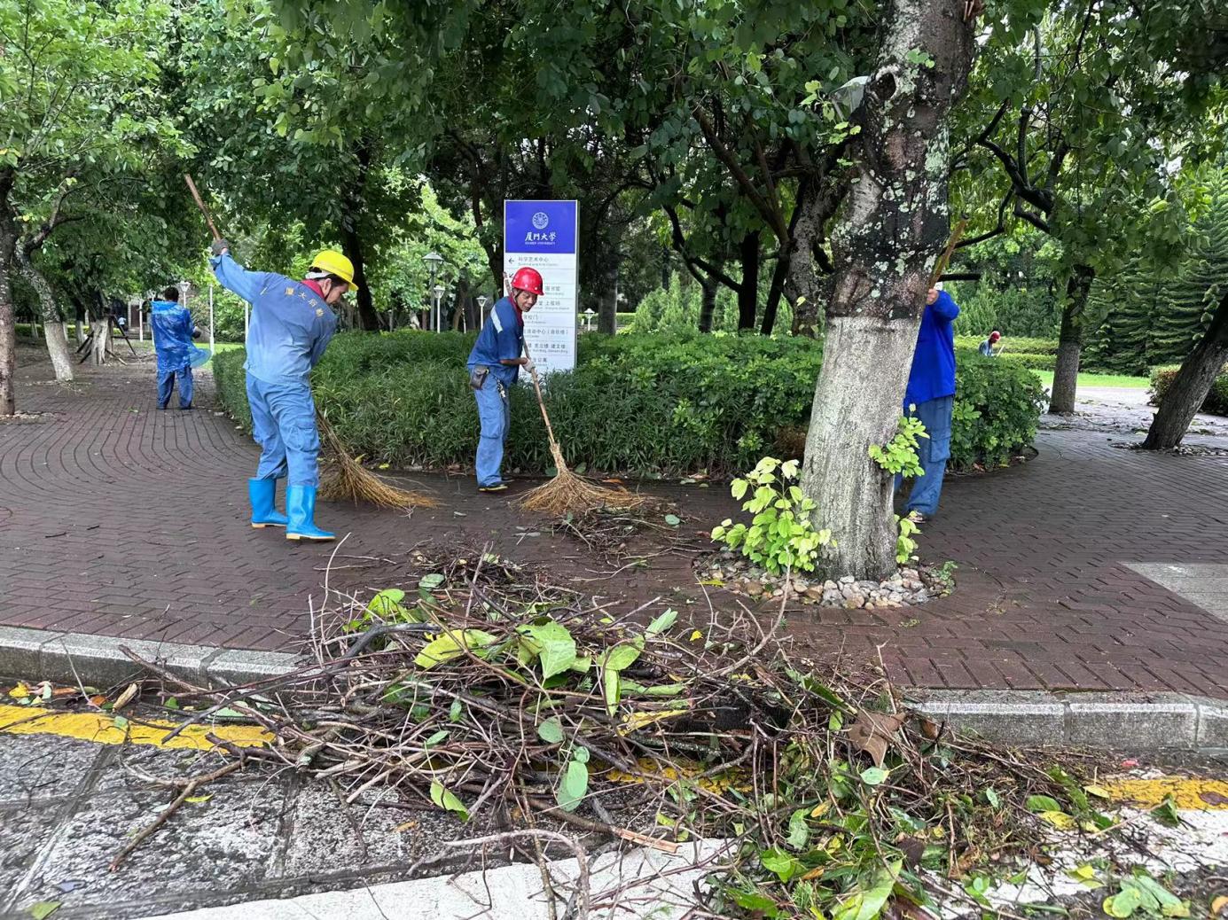 与此同时,中心各部门也迅速行动,对台风过后产生的落叶杂物、淤积泥沙、生活垃圾等进行清理打扫,使服务场所和责任区域在28日当天下午就恢复整洁。