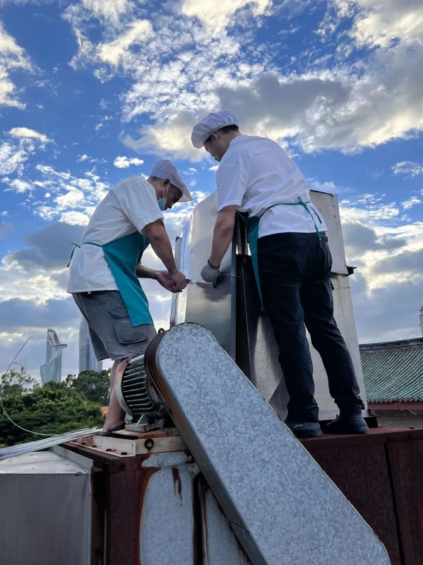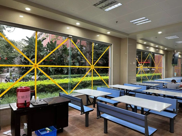 各餐厅积极开展自查行动。中心品控部、机修组、办公室联合检查组对各餐厅建筑屋面门窗、排水排涝清淤、供电用电设备、备用发电机和柴油储备等重点区域进行安全检查,及时处置各类安全隐患,做好防台风物资储备,组建应急突击队伍,在玻璃窗户上贴好米字形胶带等,全面做好防范应对台风工作。
