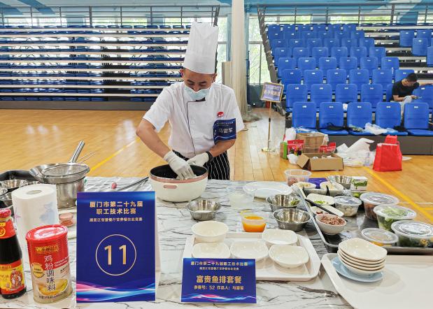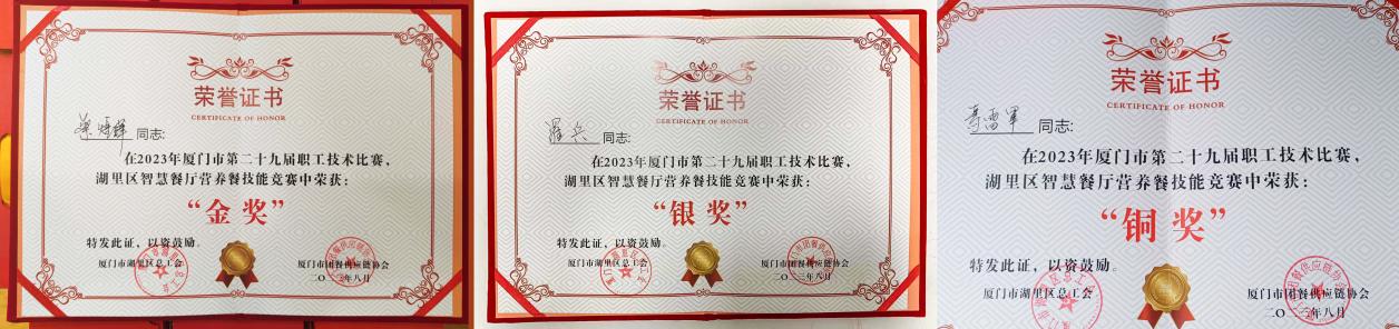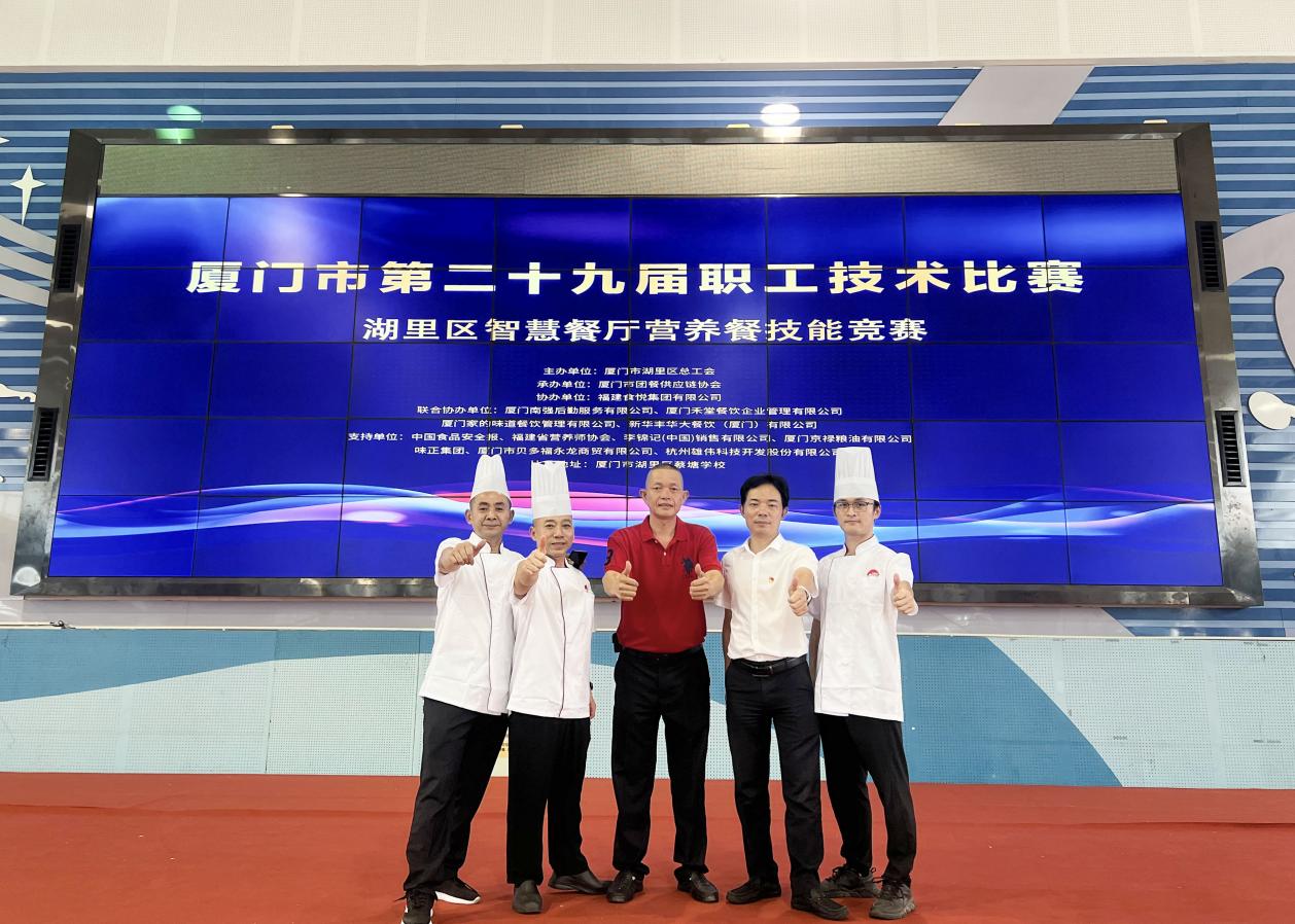2023年8月5日,由厦门市湖里区总工会主办、厦门市团餐供应链协会承办的厦门市第二十九届职工技术比赛“湖里区智慧餐厅营养餐”总决赛在厦门市蔡塘学校举办。厦门南强后勤服务有限公司参赛队伍在公司副总经理林忠辉的带队和公司技术总监林勇的指导下,经过半个月的技术培训,通过理论考试、现场比武等环节激烈角逐, 3名选手喜获佳绩,蔡煌辉荣获金奖,罗兵荣获银奖,马雷军荣获铜奖,南强后勤公司也获得了活动最佳组织奖。