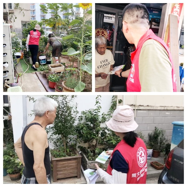 另一组在物业人员的带领下走进小区居民家里派发宣传手册、面对面宣讲登革热防控知识,帮助居民翻盆倒罐,及时清理室内外积水,清除卫生死角,消灭蚊子孳生地,扎实做好房前屋后的防蚊灭蚊工作。