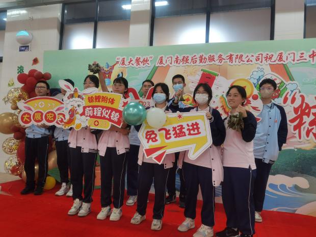 五月的暖阳灿烂明媚,五月的高三学子蓄势待发。为扎实开展学习贯彻习近平新时代中国特色社会主义思想主题教育,丰富校园餐饮服务形式,同时,也帮助考生们释放压力、放松心情,以更加饱满的精神状态冲刺高考,厦门南强后勤服务有限公司(厦大餐饮)精心策划,组织开展“一举高“粽”,前“兔”似锦”系列活动,助力高三学子决胜高考。