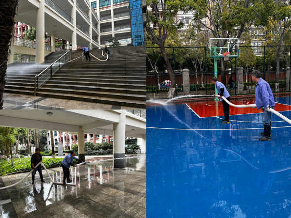 3月下旬,公司各项目振奋精神,全面提速加力,加大日常巡查、保洁绿化力度,做好重点区域的清扫冲洗工作,对垃圾死角进行彻底清理,对重点绿化带进行整形修剪和补种提升,全力达到“物见本色”“绿见本色”标准,确保物业服务区域干净、整洁。