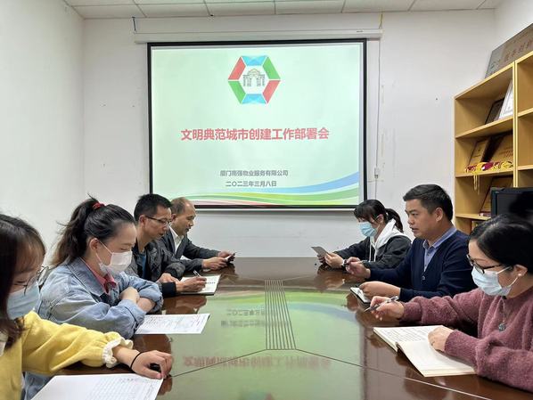 3月8日,南强物业公司召开文明典范城市创建工作部署会议,传达了市、区建设局关于创建全国文明典范城市的会议精神,要求各项目全体员工要高度重视创建工作,全员参与,加强巡查检查,完善联动机制,抓住重点,发现问题及时整改,抓实落细各项创建工作。