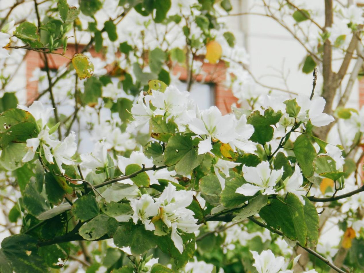 八闽园的福建山樱花、玉兰花、山茶花争相斗艳,芙蓉湖边,三角梅、紫花风铃木、黄花槐一起唱起了生机盎然的春曲,宿舍园区外的炮仗花花团锦簇,丰庭餐厅门前的羊蹄甲粉白相间,随风摇曳,更不说西部片区傲然挺立枝头的黄花风铃木和那成片成片的碧桃林......过往的师生不自觉地驻足欣赏,摄影爱好者们纷纷举起相机,将这目之所及的美好偷偷私藏。