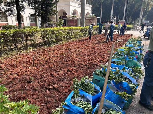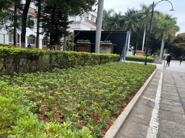 开春以后,绿化保洁部对思明校区所辖的所有绿地进行全面细致的排查,对缺株、枯苗及裸露黄土的绿地逐一登记,详细记录不同区域需要补栽苗木的品种、株数、株高、冠幅及提质改造等相关信息。