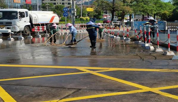 还有绿化组完成学生宿舍内外所有绿篱、植被、灌木进行美化修剪,校区行道树下垂枝修剪,确保行人安全;道路组完成校区四个大门、路面主干道、南区隧道的冲洗工作,擦拭校区各处果皮箱、广告宣传栏,清除并消杀校区公共区域的卫生死角。公教组完成37间新入职教师办公室和21间专业教室的保洁。