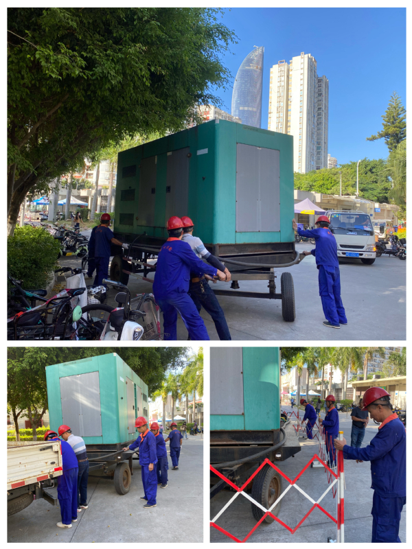 此次活动地点设置在思明校区西校门旁的露天空地上,空间较小、人员流动量较大,给临时用电设施设备的安全布设带来了一定的难度。自接到上级用电需求任务,中心负责人李春海迅速召集工程维修部管理员前往现场实地勘查、制定临时用电布设方案,并精心组织水电维修师傅前后分三批次有序开展电力设施设备的布设工作,做好各项安全防护措施,保障活动期间用电安全万无一失。