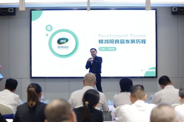 交流会上,南强后勤公司总经理罗阳首先致辞,他表示,此次活动恰逢双方顺利合作十周年,意义重大,双方的合作是互利共赢,彼此成就的典范,他强调,在面对市场新形势和技术新发展时,要时刻抱有忧患意识,守正创新,踔厉奋发,不断提高菜品技术含量。锦鸿阳食品公司董事长陈永妙则介绍锦鸿阳十年来的发展历程及未来规划。