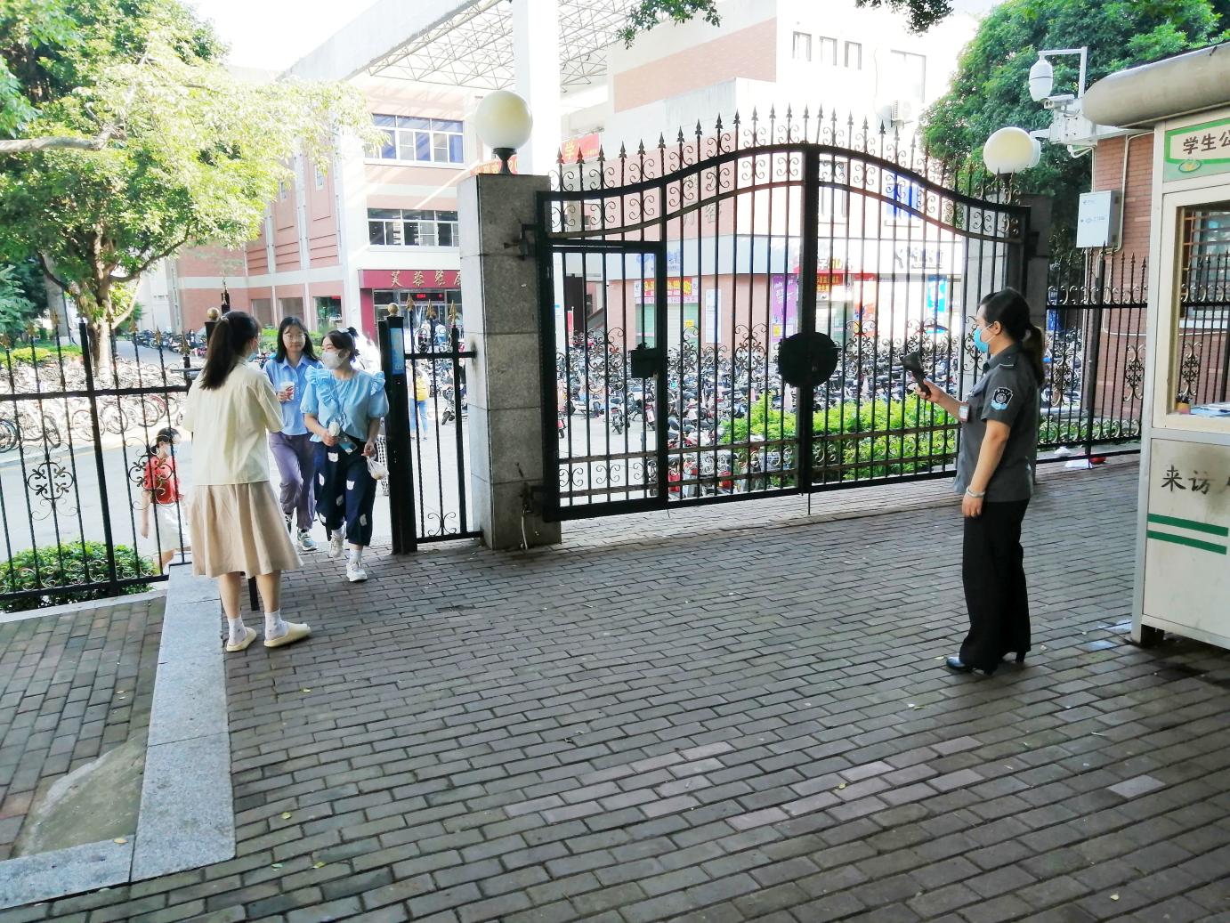 加强门禁管理,对出入学生进行体温测量