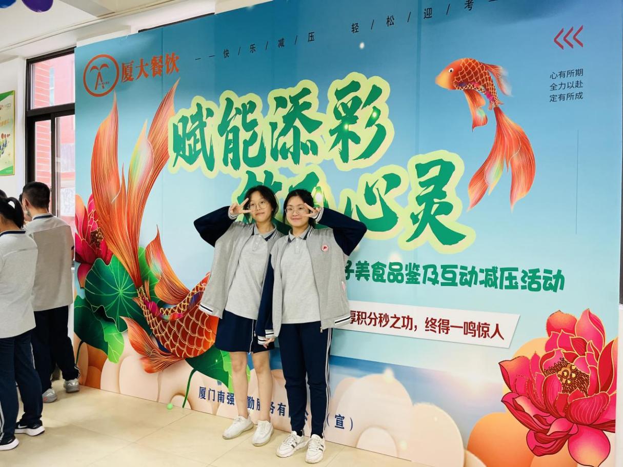 九年磨一剑,六月试锋芒。为帮助初三学子调整应考心态,缓解考前焦虑,释放备考压力,树立必胜信念,以饱满的精神、高昂的斗志迎接中考。经过精心策划,厦门南强后勤服务有限公司(厦大餐饮)所经营的厦门一中初中部餐厅举办了赋能添彩 放飞心灵——厦门一中初三学子美食品鉴及互动减压活动。
