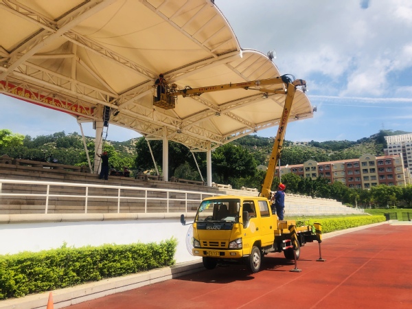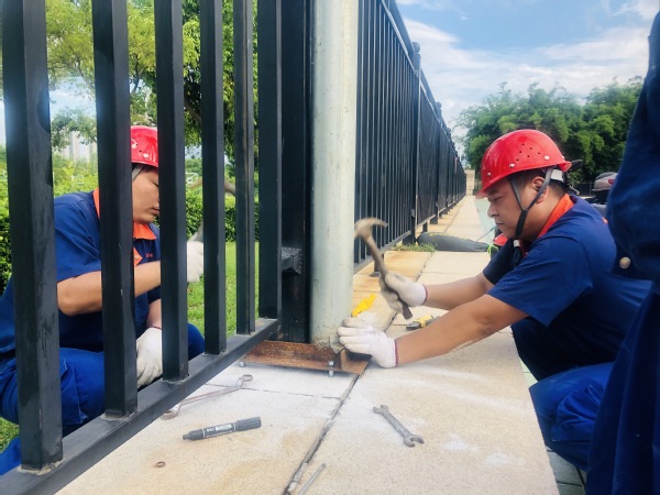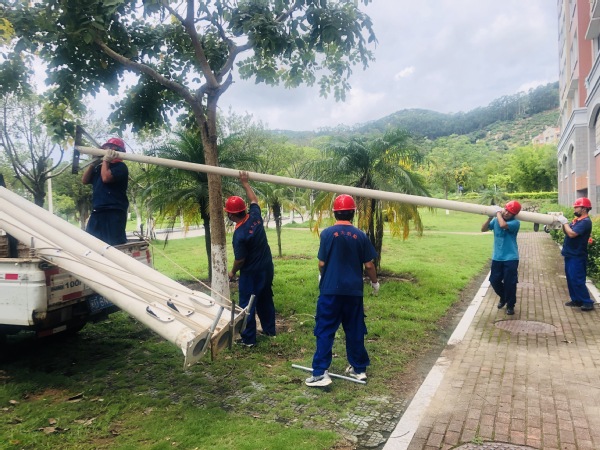 从6月21日开始,水电维修部人员克服烈日暴晒的恶劣天气,井然有序地投入到临时电缆布置、电源控制、灯杆架设、照明灯具安装,到6月27日完成会场主体灯光提升布置安装任务,并于当晚成功完成会场电源灯光的试运行测试任务、顺利通过学校验收。