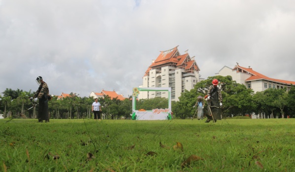 为了给毕业生们最后的在校时光增添美好的回忆,绿化员们再一次修剪大湖心岛、丰庭片区、北区田径场的草皮、绿篱。