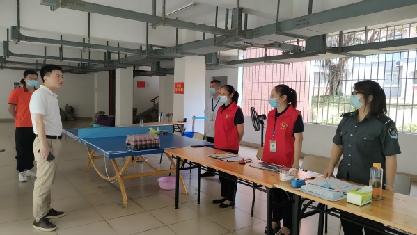 6月30日嘉庚学院院长助理兼资产与后勤管理部长廖智军一行人到各退宿办理点慰问、指导,了解退宿工作进展情况和存在的困难,并叮嘱工作人员注意防暑。
